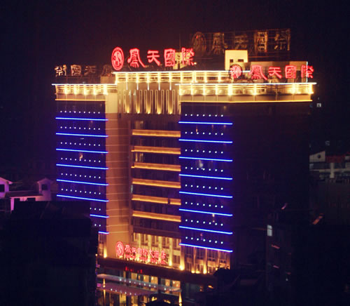 鳳凰鳳天國際大酒店總投資2.68億元,13層至尊高度?偯娣e30000多平方米,氣宇軒華。共有300余間豪華客房。地下停車場,會務中心,健身中心,中西餐廳,咖啡廳,等配套設施一應俱全。集會展、旅游、休閑娛樂于一體,卓爾不凡,盡顯大家風范。宴會廳是目前鳳凰最大,可同時容納1000人就餐。