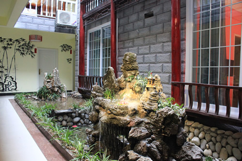 古樸的客房內(nèi),超大陽臺全景落地窗,是您欣賞沱江風光帶首選客棧,兩座百年四合院內(nèi)小橋流水,假山錦鯉,一百三十平米休閑花園別具情調(diào)。紅酒加咖啡的大堂吧、彩色精致的情調(diào)房、古典高雅的臨江觀景房以及大型公共觀景平臺,龍閣的點點滴滴都透著出古城的神韻和幽靜,走進龍閣客棧,給您一個完美的鳳凰古城沱江全景!