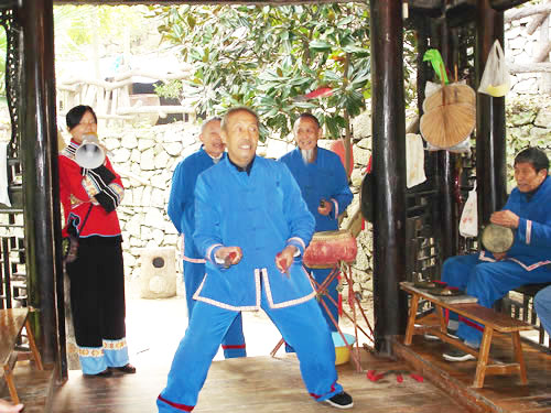 | 每年的正月初一到正月十五,藝人們結(jié)伴走村串寨拜年,表現(xiàn)對象不分貧富,戶戶必到。如遇貧寒之家,表演者將別家贈送的禮品相送,意在人人過節(jié)歡喜。充分體現(xiàn)出土家人熱情好客,心地善良的民族性格。對加強民族間團結(jié)有一定的作用。