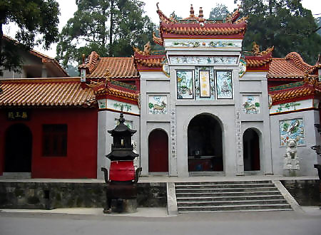 在岳麓山半腰,系晉初古寺,是佛教人湘最早的一所大寺。明神宗時(shí) 更名為萬(wàn)壽寺,民國(guó)初年復(fù)名,古麓山專。唐代大詩(shī)人杜甫曾用“寺門(mén)高開(kāi) 洞庭野,殿腳插入赤沙湖”的詩(shī)句稱頌殿字宏大。大雄寶殿等主要建筑,于 1944年被炸毀,僅存山門(mén)和觀音閣,現(xiàn)已修整一新.山門(mén)上有“古麓出寺” 的橫額,兩旁為“漢魏最初名勝,湖湘第一道場(chǎng)"對(duì)聯(lián),門(mén)外古楓參天,濃 蔭覆蓋,門(mén)內(nèi)園圃百花爭(zhēng)艷。觀音閣為磚木結(jié)構(gòu),1955年曾加以修葺,1980 年再次修整恢復(fù)原貌,并在廳堂神龕中置觀音像。閻內(nèi)常舉辦小型書(shū)畫(huà)展 覽。觀音閣前有兩株羅漢松,左邊一株是六朝遺跡,稱“六朝松",樹(shù) 齡在1700年以上, 是岳麓山植物界的"元老", 老干新枝,紛繁翁 郁,彌足珍貴;右邊一株于清代被巨風(fēng)拔去并被清代人補(bǔ)植。兩棵古松 并峙于閣前,游人樹(shù)下經(jīng)過(guò),若入關(guān)隘,故有“關(guān)松"之稱。