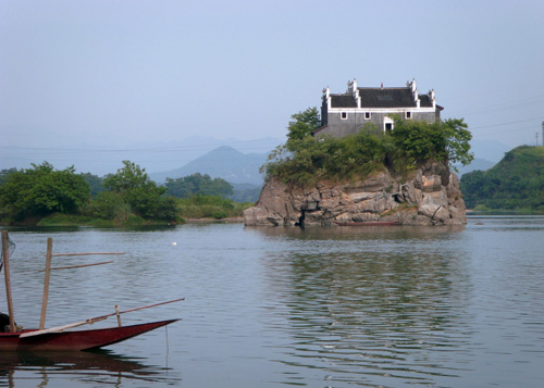 香零山為天然石磯結構,地處中流,隨瀟水水勢而展現(xiàn)不同的風光,勢浩蕩則如汪洋中之一小舟,水勢弱小則島亭昭然挺立。若雨后日出,煙鎖山腳,霧雨朦朧,往來舟楫,若隱若現(xiàn),給人一種煙波浩渺的意境,因而有“香零煙雨”之稱,為永州八景之一。