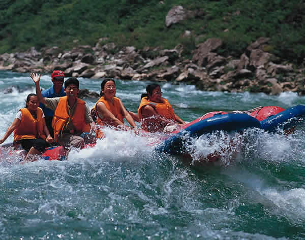 茅巖河漂流 這是繼張家界國家森林公園開放以后開辟的又一個(gè)旅游新景區(qū),坐落在市區(qū)以西35公里處。1986年,茅巖河在全國首創(chuàng)橡皮舟漂流旅游項(xiàng)目。茅巖河全長(zhǎng)50多公里,兩岸全是懸崖峭壁,河段多險(xiǎn)灘、急流、瀑布、古木,有"百里畫廊"之美譽(yù)。乘橡皮舟順?biāo),時(shí)而急,驚心動(dòng)魄,時(shí)而緩,優(yōu)哉游哉。一路賞夾岸奇山異峰,又可領(lǐng)略水上激情,二者可兼得,其中茅巖瀑布和溫泉最為壯觀和最具特色。 茅巖河是澧水的上游一段,這里有橡皮舟漂流的旅游項(xiàng)目,游人乘橡皮船順?biāo),既可以欣賞美麗的峽谷風(fēng)光,又可領(lǐng)略到急流險(xiǎn)灘的驚險(xiǎn)與刺激。 茅巖河的漂流段在張家界城西20公里青魚潭往北的一段,這里雖然灘險(xiǎn)流急,但河床坡度小,水位落差不大,險(xiǎn)灘一般僅有20余米長(zhǎng),而且險(xiǎn)灘與險(xiǎn)灘間的距離又很長(zhǎng),所以在這里漂流是有驚無險(xiǎn)的。