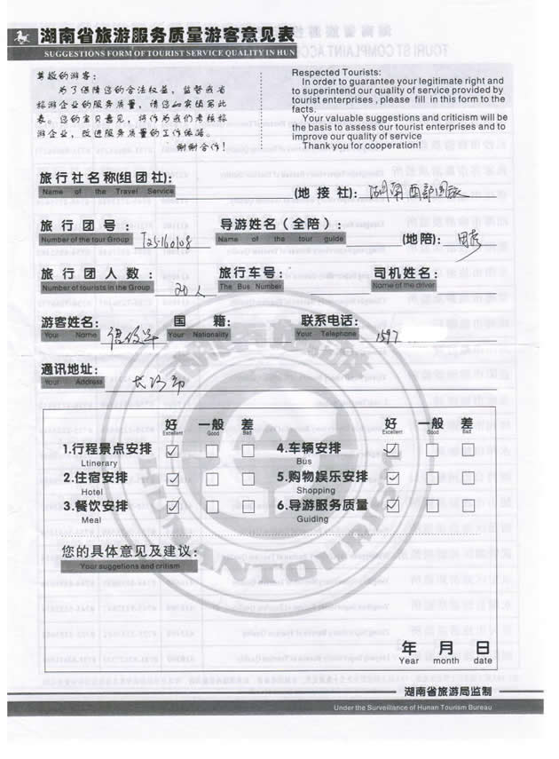 1月份,長沙舒錦一行21位貴賓與湖南西部(張家界)中國國際旅行社工作人員——張群取得聯(lián)系,經(jīng)過商談,雙方達(dá)成協(xié)議并簽訂旅游合同,于1月8日抵達(dá)張家界,開始張家界之旅。此次行程是由我社優(yōu)秀導(dǎo)游——田杉負(fù)責(zé)旅游接待工作,田導(dǎo)在旅游過程中講解詳細(xì),客人也很滿意。同時(shí)也感謝長沙舒錦一行貴賓選擇湖南西部(張家界)中國國際旅行社,以及您對湖南西部國旅的信任與支持。我們會(huì)繼續(xù)努力,做好旅游接待工作。期待下一次與您的合作,祝您愉快!