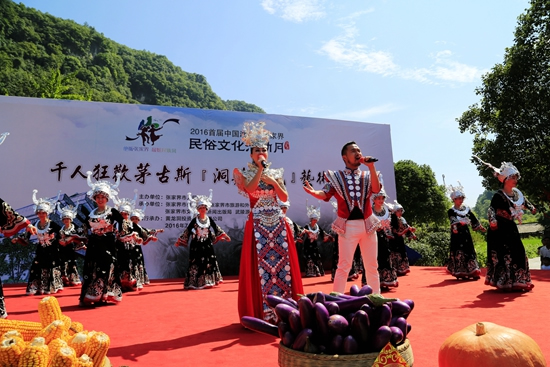 7月29日上午9點30分,由張家界市人民政府主辦,張家界市委宣傳部、市旅游和外事僑務(wù)委員會、市文體廣電新聞出版局、武陵源區(qū)人民政府承辦,黃龍洞景區(qū)協(xié)辦的“絕版張家界,最炫民族風(fēng)”張家界民俗活動月第三場活動在黃龍洞景區(qū)啟動。現(xiàn)場以土家人慶祝豐收的鼓舞拉開序幕,土家鼓舞歡悅的節(jié)奏,夸張的舞姿開場就吸引了幾千游人和當?shù)厝擞^看。草根夫妻檔歌手,張家界“山水組合許勇、舒維亮麗的服飾,野性的嗓音……”以一首《我在高山唱》歌曲,征服現(xiàn)場游客,贏得雷鳴般的叫好聲。